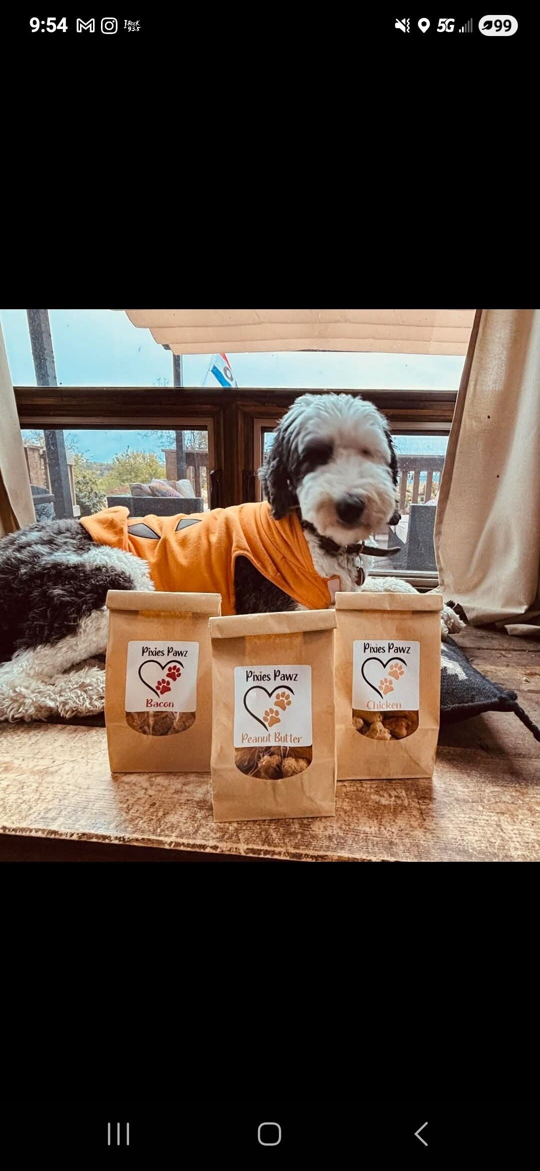 Hi and welcome to my business page. I make human grade dog treats with no fillers in small batches out of my home. They will be availble in Peanut Butter, Chicken and a Bacon flavor. They will be one standard size in the treat bags. I have molds and cookie cutters of different sizes for special orders. Sizes that can range from tiny shapes for little yorkies and cutters for the bigger treats for your bigger dogs. Drop me a message if you would like to know more or would like to place an order. Thank you and have a Pawesome Day!